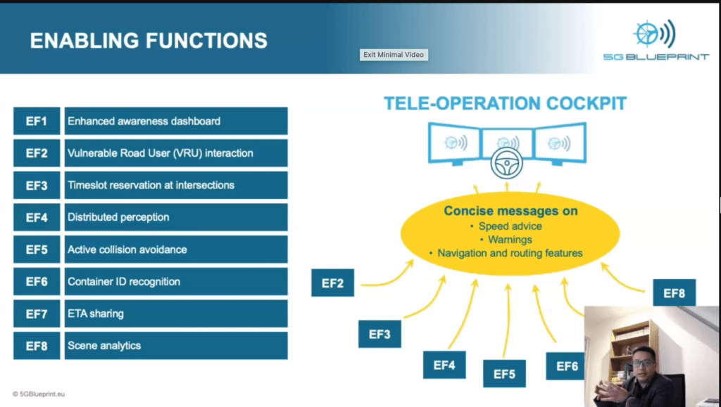 “The new generations, such as 5G, are not only about more capacity to download information but also about higher capacity to upload information from massively deployed devices,” said Dr. Marquez-Barja during his presentation, which covered transport and logistics current scenario, the project overview, its objectives, use cases, pilot areas, enabling functions, as well as challenges and lessons learned. “One of the big risks for the success of teleoperated vehicles, such as cars and vessels, is the lack of a clear legal and regulatory framework,” said Dr. Marquez-Barja concluding his presentation.