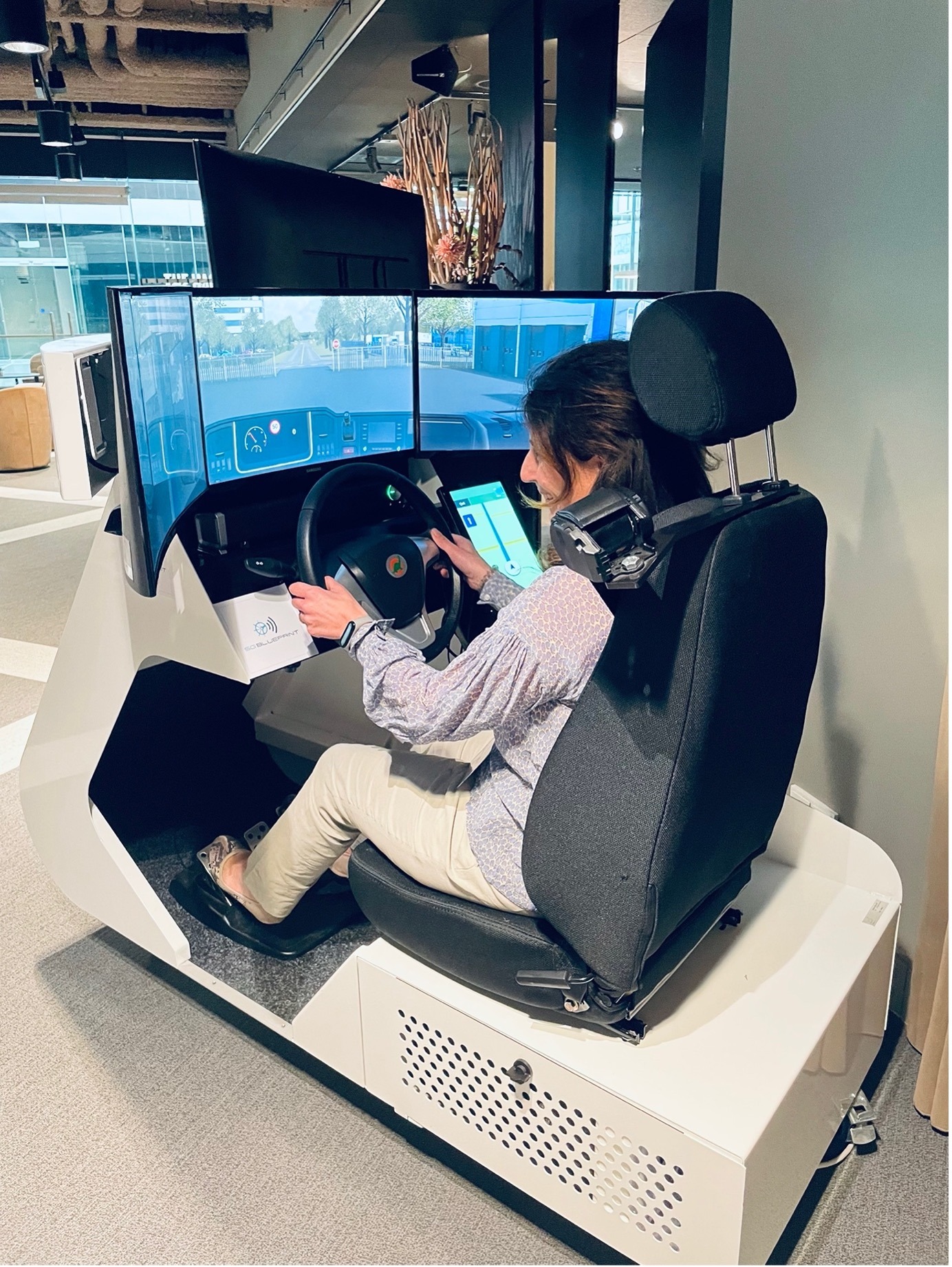 During the breaks, the participants had an opportunity to test their driving skills: several have tried to teleoperate a virtual truck thanks to the 5G-Blueprint simulator.